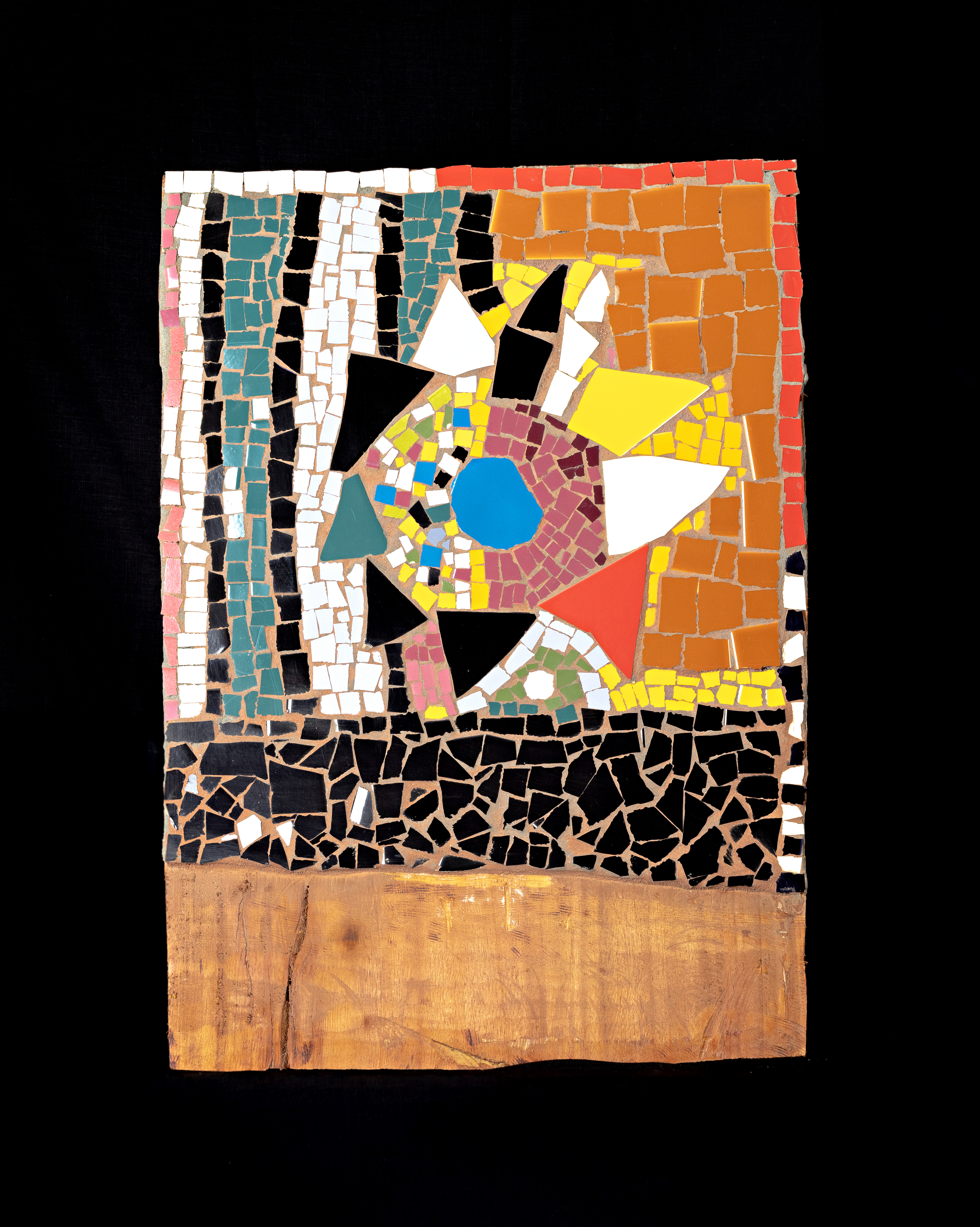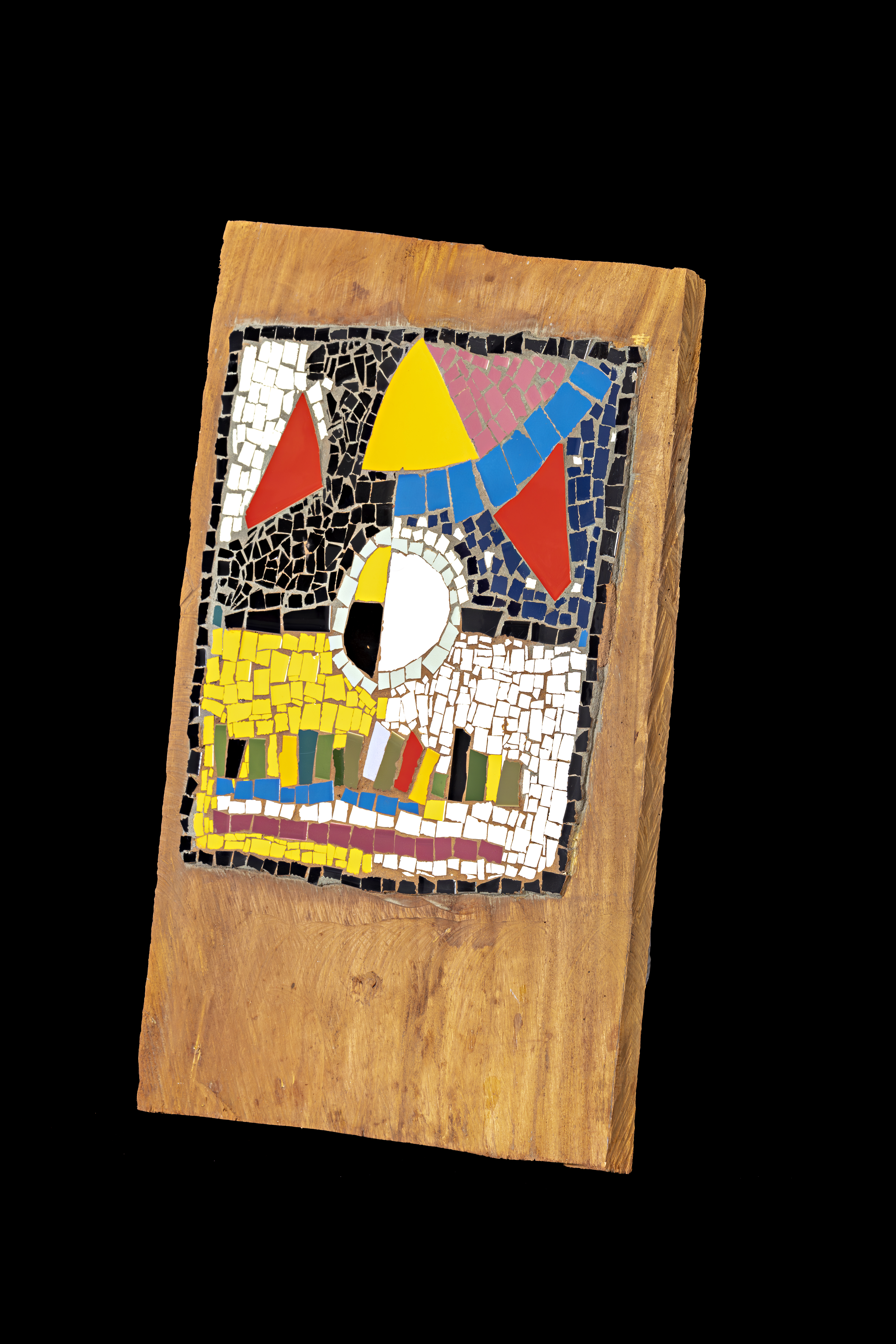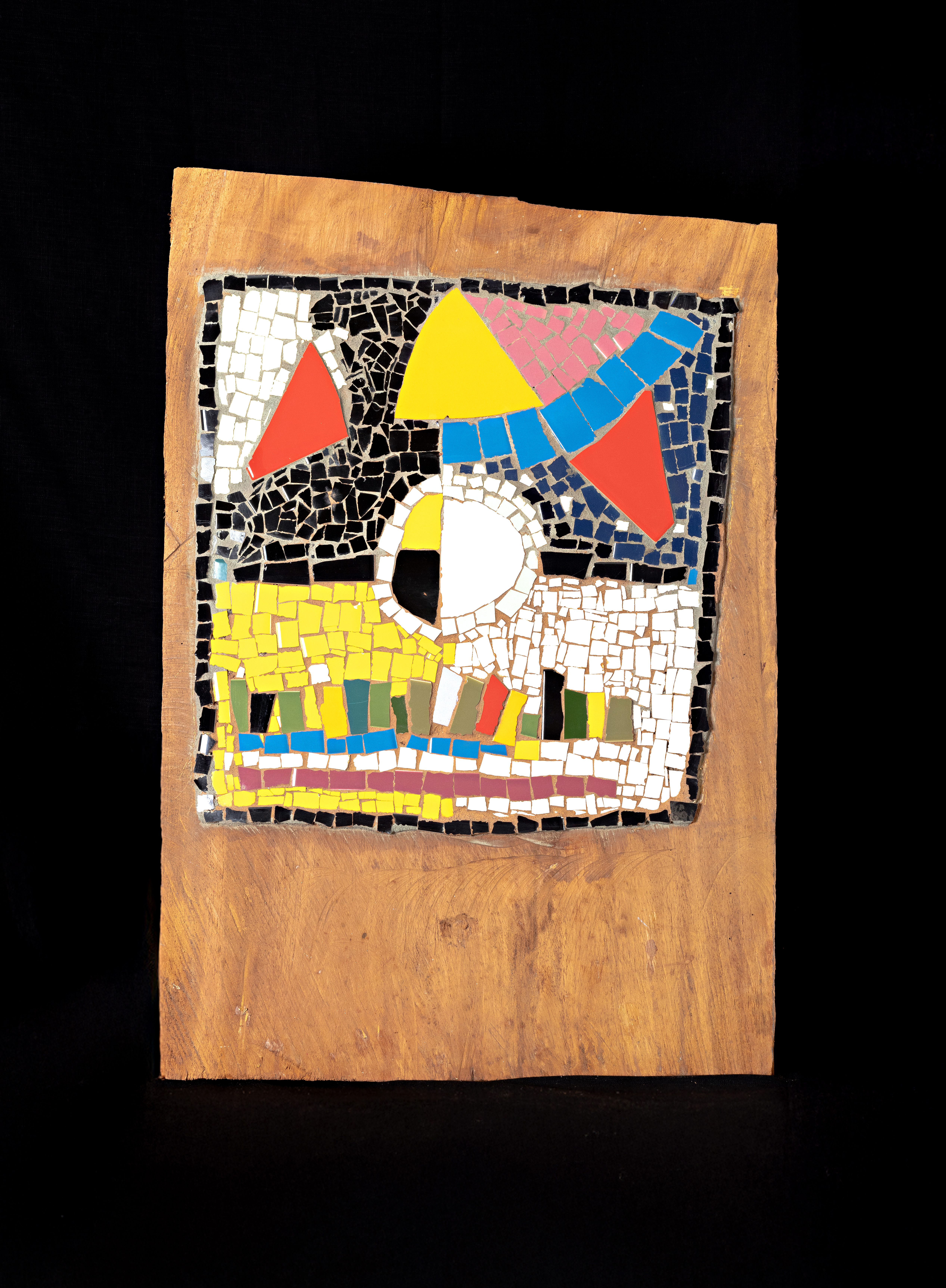 Mosaico em madeira de Jaqueira, árvore tradicional em culturas negras Brasileiras. / Mosaic in wood from Jaqueira, a traditional tree in black Brazilian cultures.