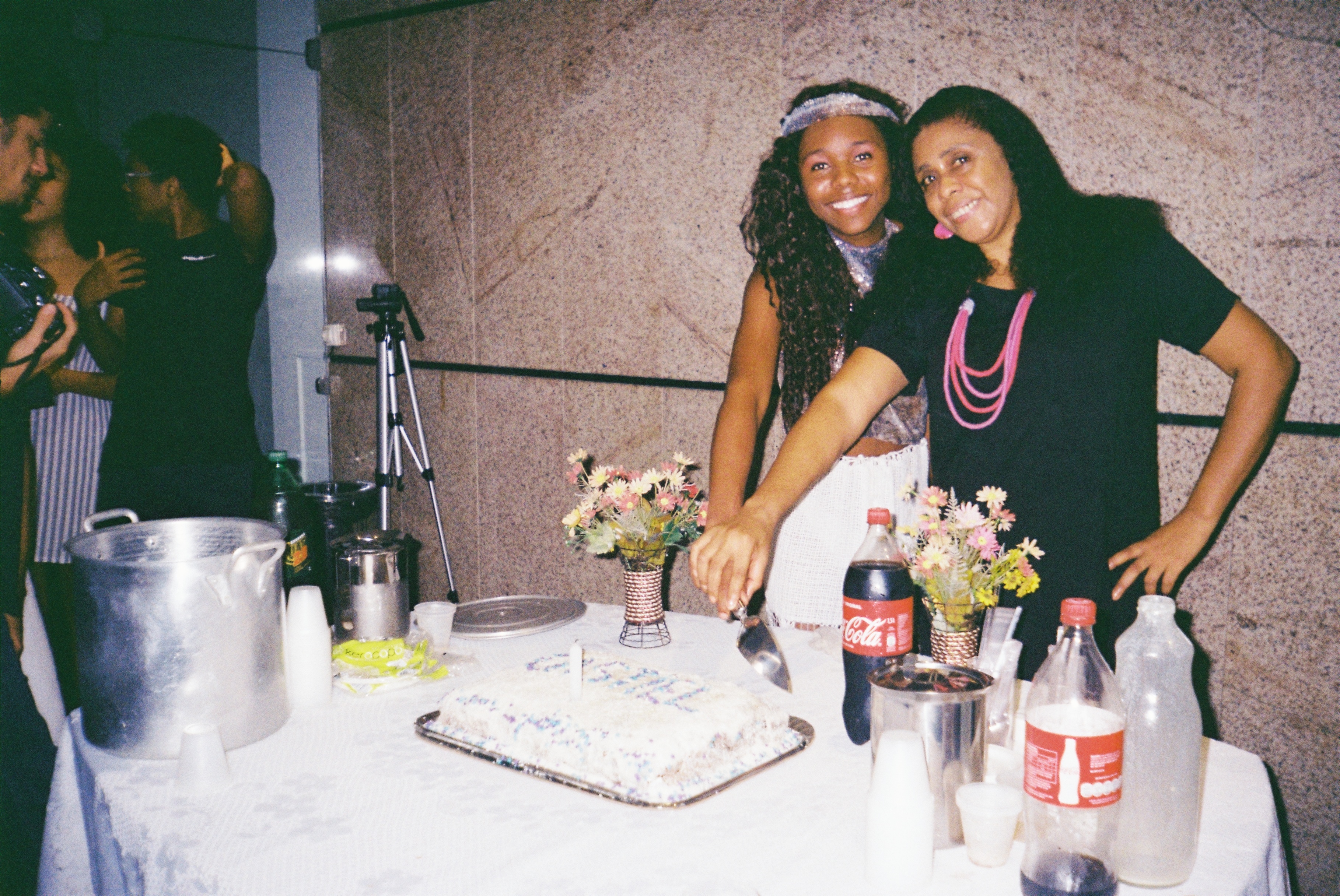 Minha avó Julite sempre fez nossos bolos de aniversário enfeitados com nossos nomes. Com 22 anos, pedi para ela fazer um bolo, com meu nome nome; Castiel. Quem fez foi Julite e minha tia-madrinha Tati, sua filha. Com esse bolo, fiz uma festa a abertura de “O trauma é brasileiro”. Registramos com camera analógica. Tia Marcela cortou o bolo, como sempre fez em nossas festas. Celebramos a transfiguração de nossas vidas.